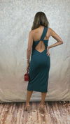Classy crepe one shoulder cut out full length dress. Perfect for any classy lady who likes to color outside of the lines!